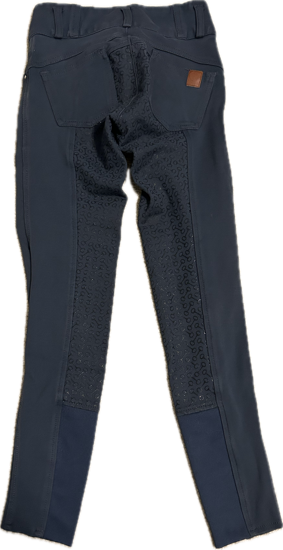 Traditional styling meets modern performance in this youth / children’s full-seat breech from Horze. Designed with a high waist tailored for younger riders, the cut offers comfort, support, and a secure fit—slightly higher in the back for extra coverage in the saddle. The seat and thigh areas feature a silicone bit-pattern print that provides reliable grip and stability, helping riders stay balanced whether schooling or jumping.