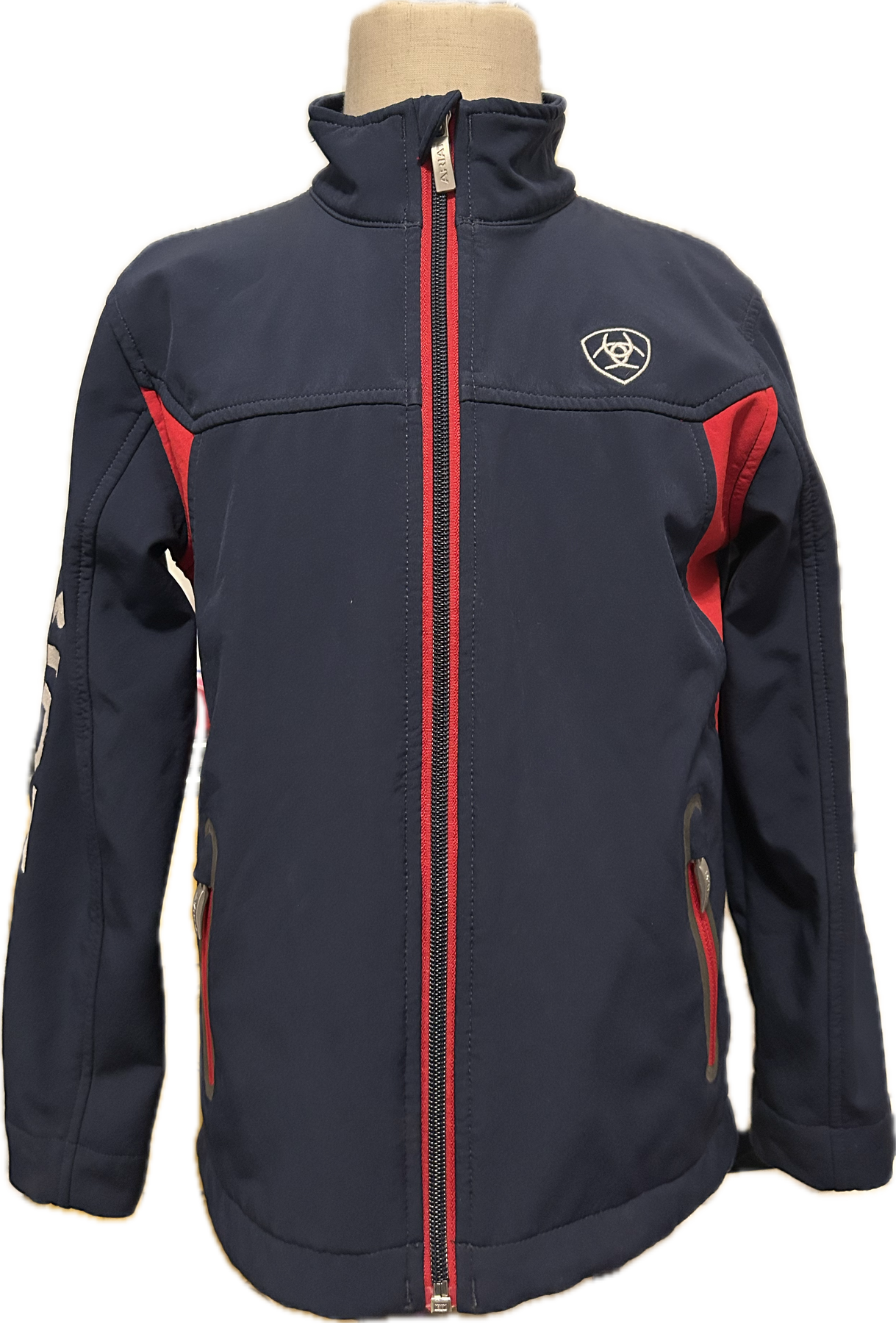 Keep your young rider warm, comfortable, and stylish with the Ariat Team Softshell Jacket in Navy/Red. Made from a stretch nylon softshell with a cozy micro-fleece backing, it provides wind and light rain resistance while allowing full freedom of movement. Featuring AriatTEK® technology, a PFC-free water-resistant finish, a mock collar, zippered hand pockets, storm cuffs, and bold team branding, this jacket combines performance with sporty style. The tailored fit and drop-tail hem make it perfect for barn days, casual wear, or riding, while high-quality materials ensure durability and easy care.