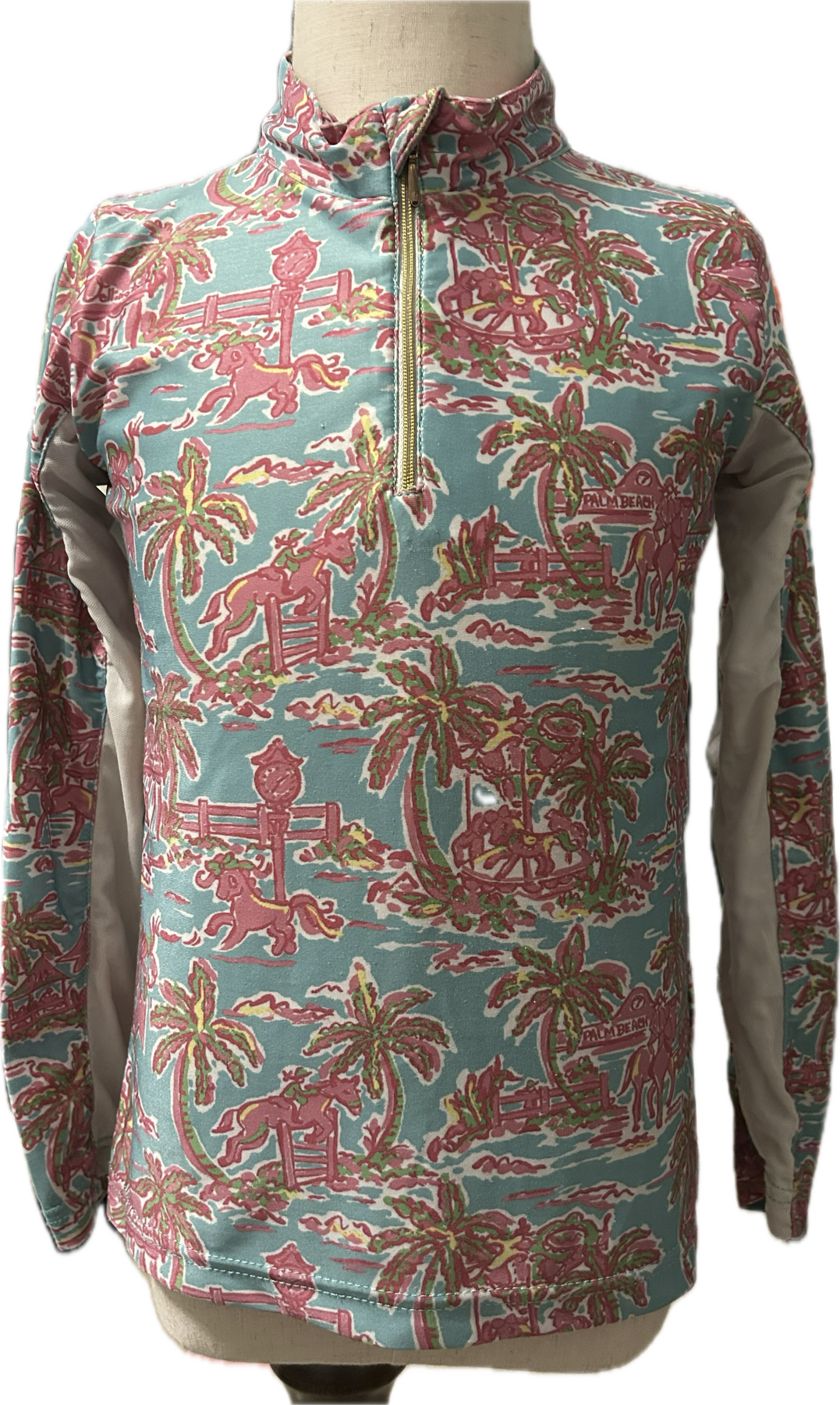 This charming children’s long sleeve shirt from Belle & Bow brings playful style to every ride. The soft, lightweight fabric keeps young riders comfortable from barn to school and everywhere in between. A bright teal base sets the stage for an adorable pink pony pattern, creating a fun, cheerful look little equestrians love. The quarter-zip neckline allows for easy on-off, while breathable panels help maintain comfort during active days. Durable, smooth, and kid-friendly, this shirt is perfect for lessons, schooling, or everyday wear with a touch of pony flair.