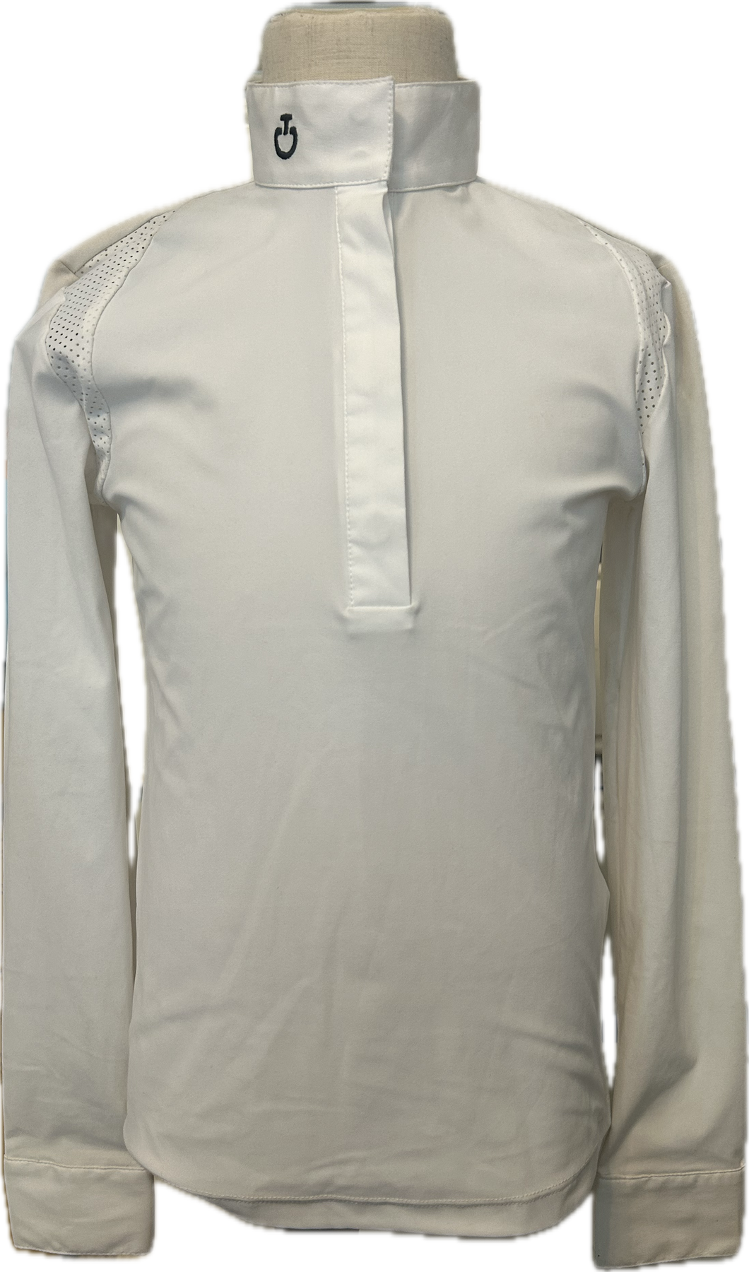 Keep young riders cool, comfortable, and stylish with the Cavalleria Toscana Child Long-Sleeve Jersey Shirt. Made from high-performance technical fabric, it features perforated panels across the shoulders for optimal ventilation, allowing freedom of movement while riding. Lightweight, moisture-wicking, and stretchy, this shirt ensures all-day comfort during training or competition, combining functional performance with Cavalleria Toscana’s signature elegant style.