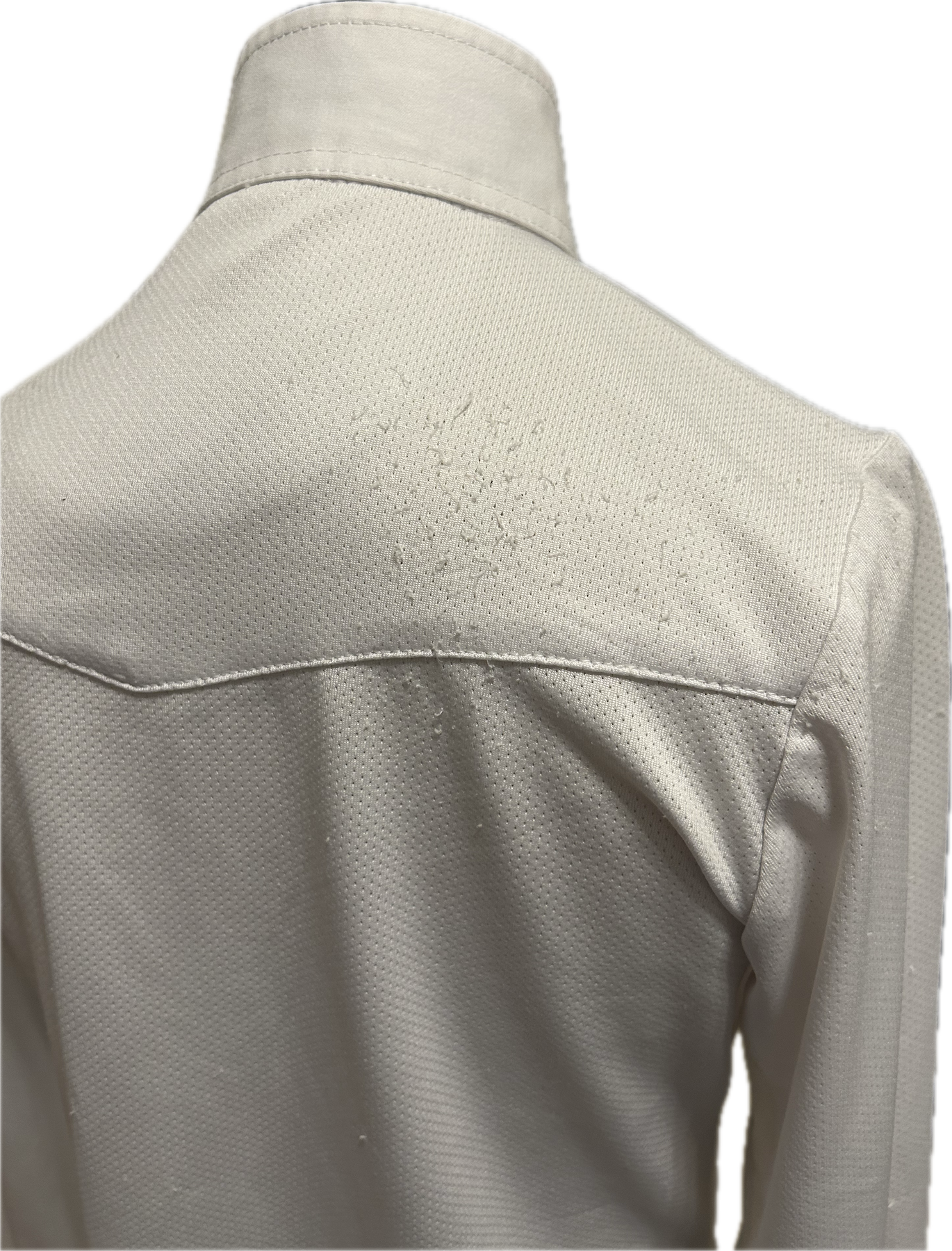 Add a splash of fun to your young rider’s show outfit with this Ovation long sleeve show shirt. Designed for comfort and performance, it features breathable armpit ventilation to keep kids cool during practice and competition. The inside of the collar and cuffs showcase the whimsical “OMG Ponies” pattern, adding a playful, colorful twist to a classic equestrian look.