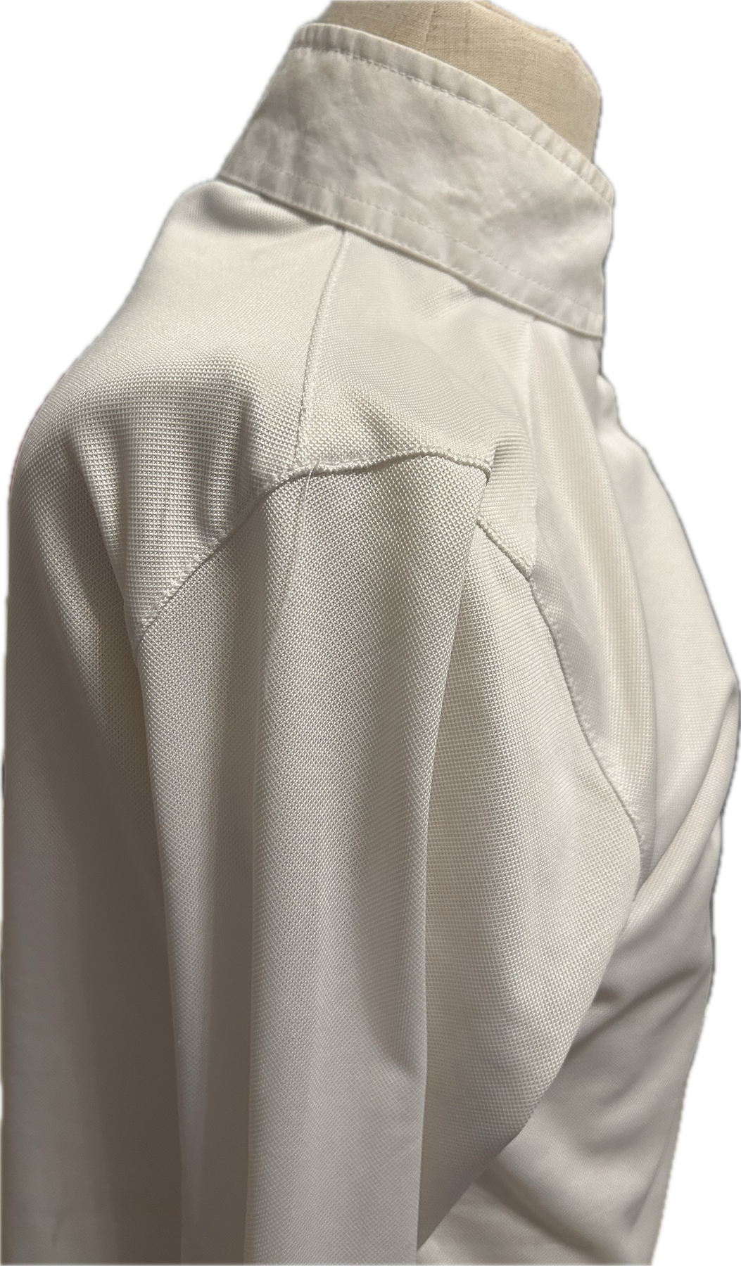 The shirt features ventilated underarms for enhanced airflow and a neat snap-closure collar to prevent gaping. A fun patterned fabric inside the collar adds a touch of personality—perfect for riders who like subtle, stylish details. Durable yet soft, this shirt moves with your child for a full range of motion while maintaining a polished, professional look.