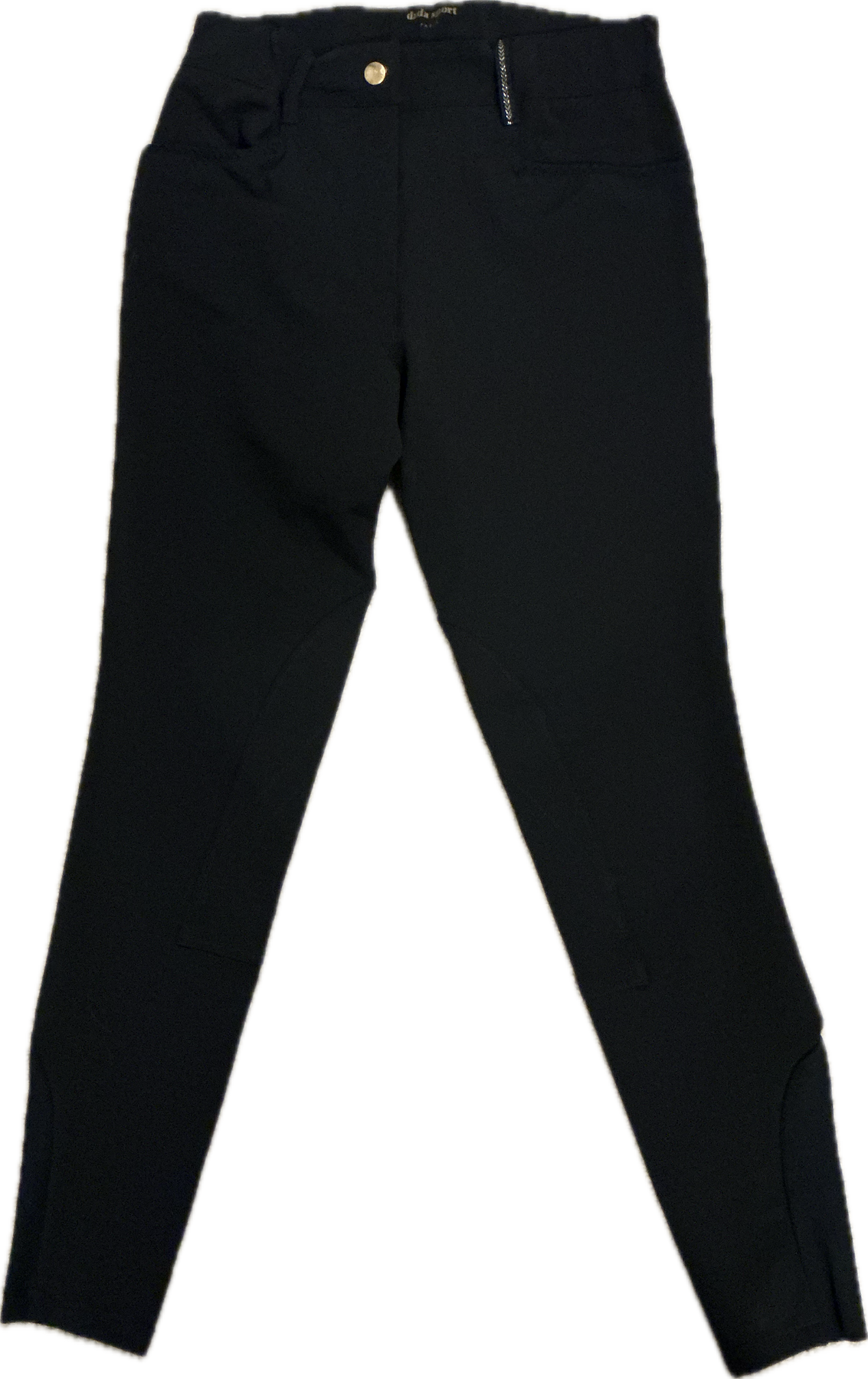 These Dada Sport breeches combine modern performance with refined detailing. Designed with a single closure button engraved with the Dada logo and a secure front zipper, they offer both style and function. The breeches feature two front pockets for convenience, along with two nonfunctional back pockets and discreet logo embroidery on the back for a signature finish. Made from high-performance stretch fabric, these breeches ensure a flattering fit, durability, and complete freedom of movement for training or competition.