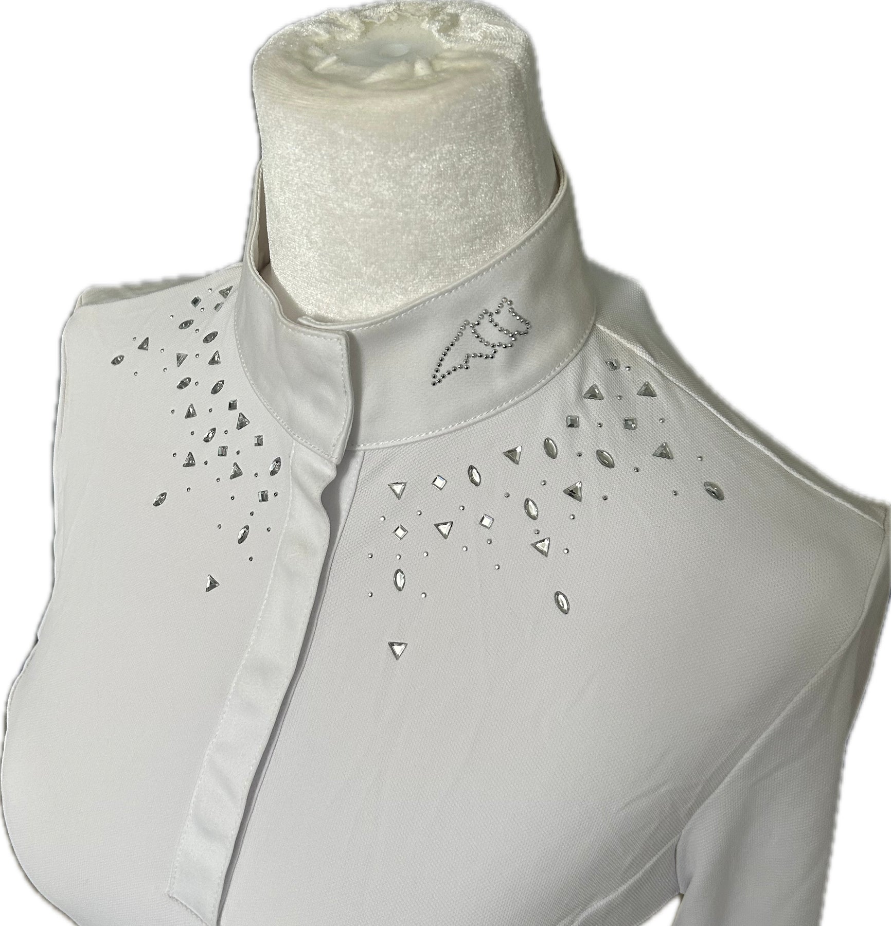 Elevate your competition wardrobe with the Equiline Gavag Long Sleeve Competition Polo for women. Crafted from breathable, stretchable tech pique fabric, this polo ensures exceptional comfort and freedom of movement while riding. Its sleek design features a hidden snap-front placket for a polished appearance, while subtle rhinestone accents on the collar and chest add a touch of elegance. Lightweight and stylish, this polo seamlessly combines performance and sophistication, making it ideal for competitions or any equestrian event where you want to look your best.