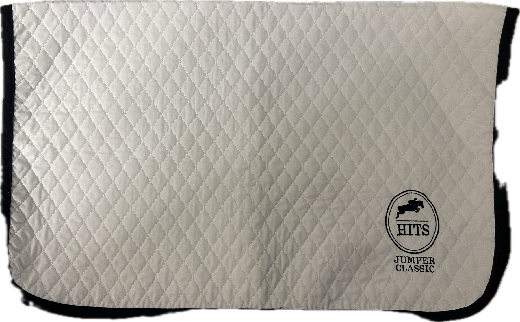 The HITS Jumper Classic Saddle Pad combines timeless style and everyday functionality. Its crisp white base with navy edging creates a clean, classic look, while the soft, durable fabric sits comfortably under the saddle to protect your horse’s back and stay breathable during training or competition. Simple, elegant, and reliable, it’s a must-have for any jumper rider.