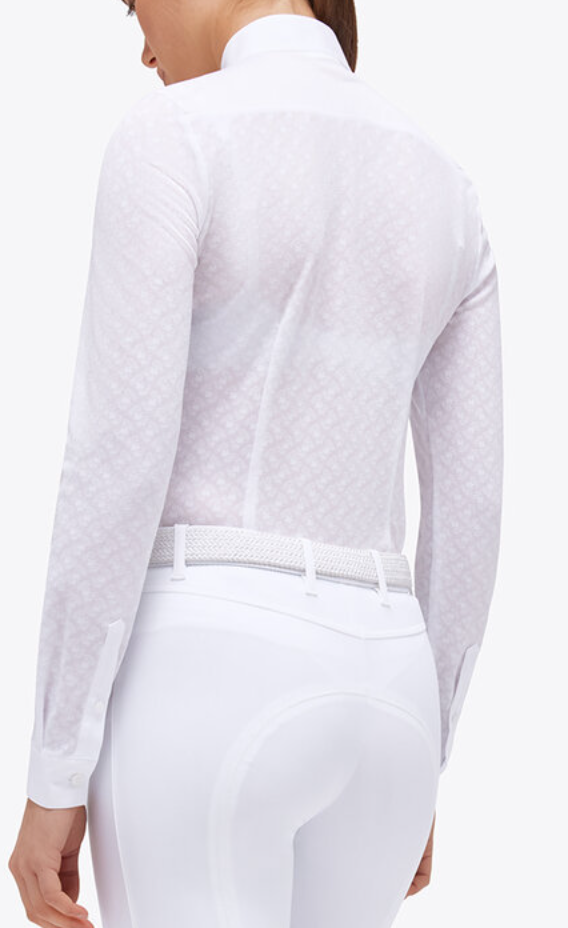 The Cavalleria Toscana Women’s Sheer Jacquard Jersey Competition Shirt blends modern style with classic equestrian elegance — perfect for demanding show rings and competitive riders. Designed in breathable, bi-stretch jacquard jersey, this long-sleeved shirt offers a lightweight feel and freedom of movement essential for peak performance.
