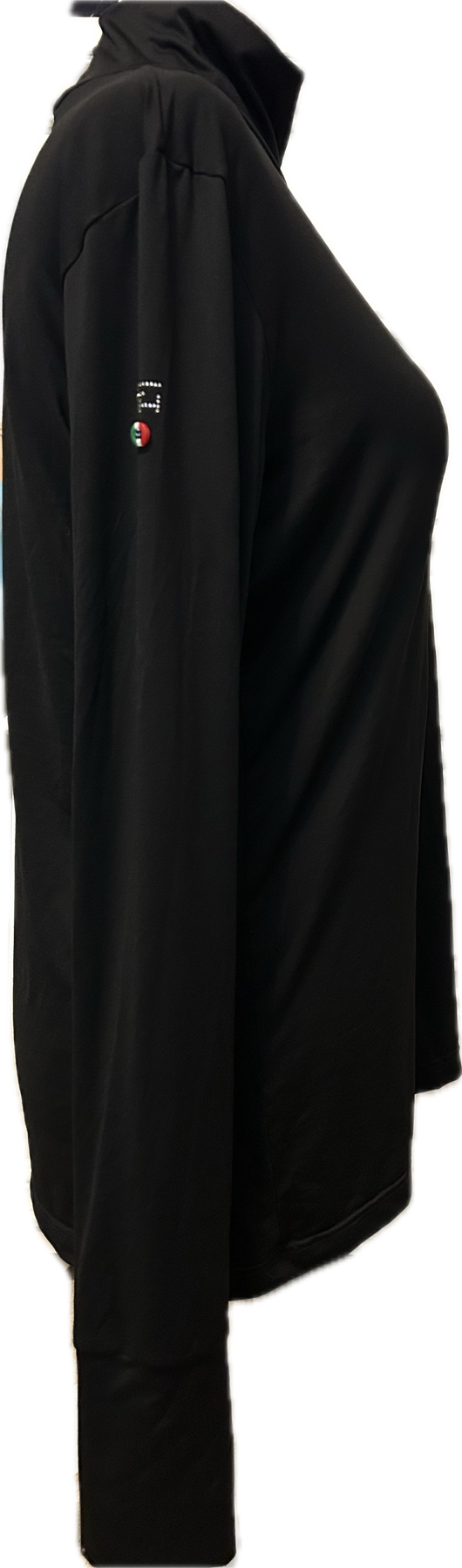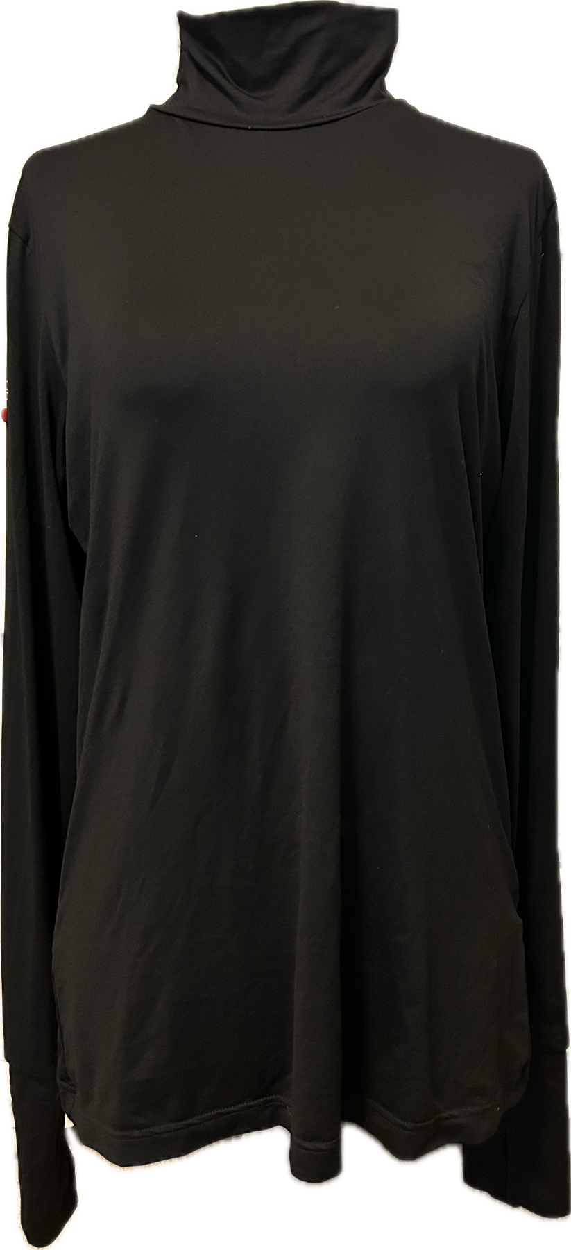 A high-performance long sleeve riding shirt designed for comfort and sun protection. Made from lightweight, breathable microfiber with UV protection, it features a mock turtleneck and thumbhole sleeves for extended coverage and freedom of movement. Perfect for training, schooling, or layering under show jackets, with a sleek, athletic fit that moves with you.