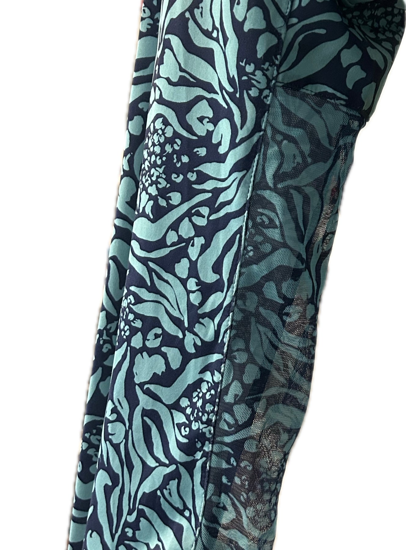 Crafted from SanSoleil’s high-performance SolTek LUX fabric, this long-sleeve mock-neck top delivers UPF 50+ sun protection, quick-cool comfort, and a soft, stretchy feel designed for long days in the saddle. The signature “Kingdom” print is reimagined in rich teal with bold navy accents, offering a fresh, polished look that pairs effortlessly with breeches or everyday activewear. Mesh ventilation under the arms enhances airflow, while the classic fit, shaped hem, and crystal zipper pull add refinement to this versatile, easy-care performance piece.